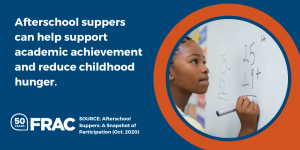 Afterschool nutrition programs play a key role in reducing hunger and supporting quality afterschool enrichment programs, research shows.